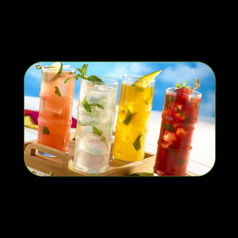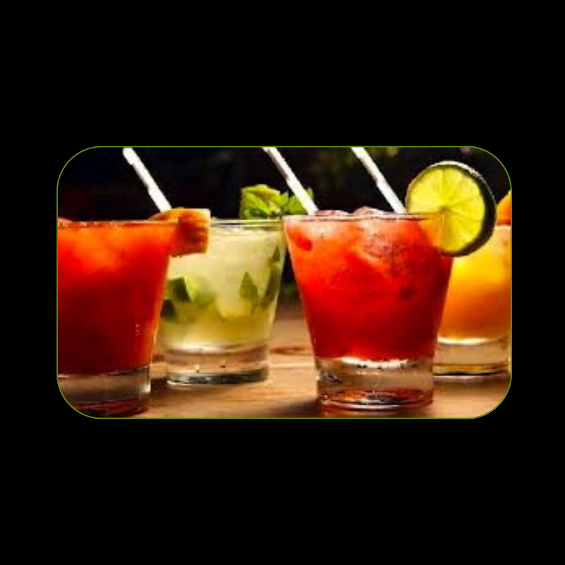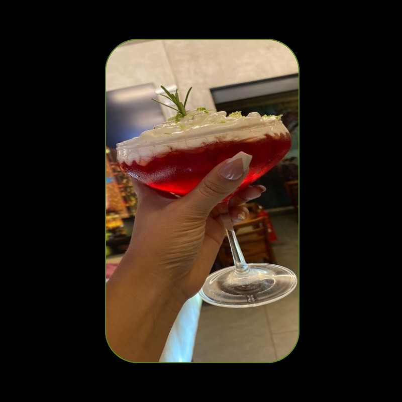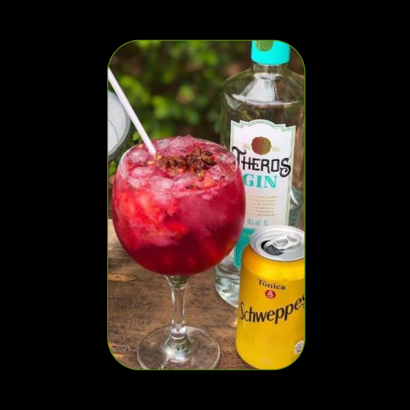 Frutas vermelhas, Limão siciliano, Tangerina , Maracujá, Gin Fruta a escolha do sabor: Uma dose de xarope, Água tônica e Especiarias para decoração.