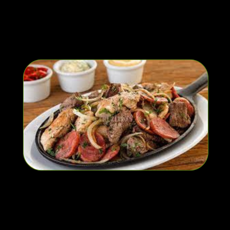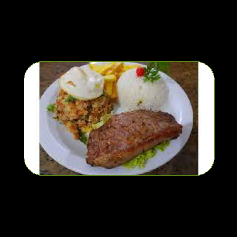 Acompanha, (Arroz, Tropeiro, Farofa, Vinagrete, Batata Frita ou Mandioca).